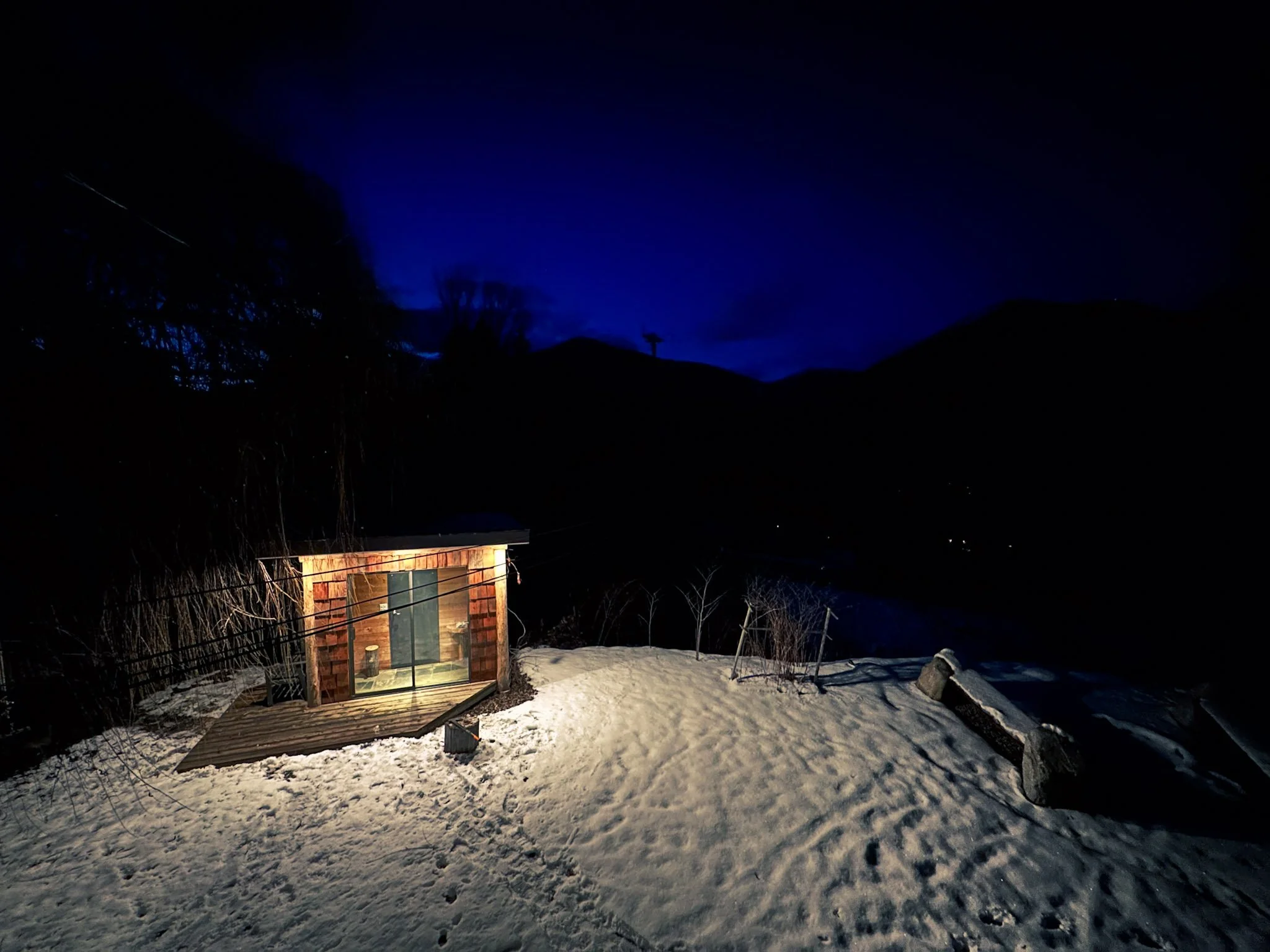 Shared hot tub and optional wood-fired sauna.